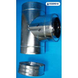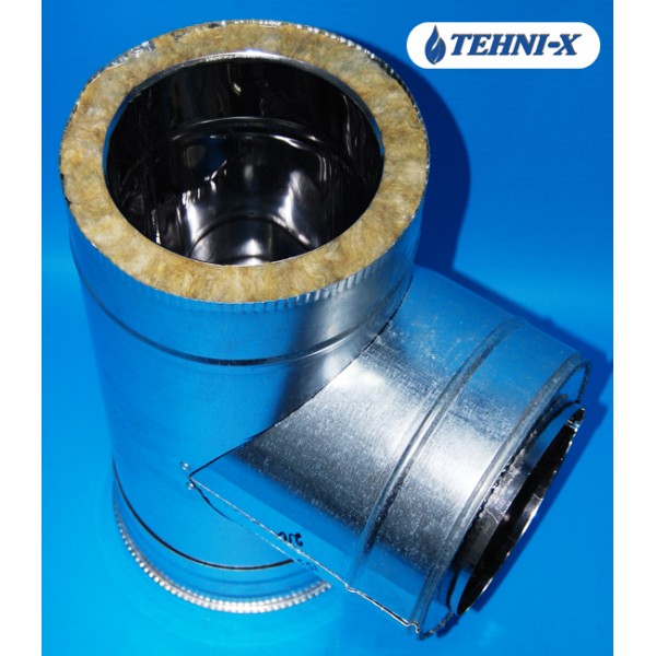 Тройник с лейкой из нержавеющей стали толщиной 0,5 мм с термоизоляцией в оцинкованном кожухе Ø 180x240