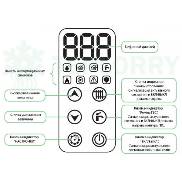 - Сенсорный дисплей. Управление и выбор параметров и режимов котла. Индикация параметров и режимов благодаря технологии Q touch, бесперебойно работает в широком температурном диапазоне и имеет хороший отклик на ощупь.