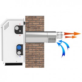 Отвод продуктов сгорания и забор воздуха производится с помощью дымовоздушного блока через наружную стену здания.