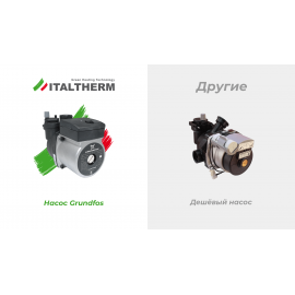 Котел с пластинчатым теплообменником с открытой камерой сгорания, мощностью 24 кВт от компании Italtherm. Гидравлика данных котлов – это обилие латунных деталей в гидравлической группе. Такой подход внушает доверие и довольно редко встречается в нашем сегодняшнем мире. Переключение между работой ГВС и отоплением осуществляется с помощью 3-ходового клапана с электроприводом.