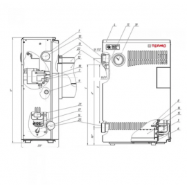 Котел газовый парапетный напольный Термо 12 С идеально подходит для отопления квартир, частных домов, помещений и сооружений. Имеет боковое, универсальное подключение к водяному отоплению и заднее подключение к дымоходу (дефлектору). Котел имеет вертикальную жаротрубную конструкцию. Котел Термо не требует подключения к электрической сети. Это лучший вариант для замены давно эксплуатируемых котлов торговой марки "ТЕРМО", а также большинства других котлов аналогичной конструкции. Высокая надежность и безопасность в работе благодаря применению итальянской газовой автоматики SIT и газогорелочного устройства POLIDORO. Высококачественная порошковая покраска котла и защитное антикоррозионное покрытие теплообменника. Высокие энергоэффективные характеристики при эксплуатации. КПД выше 92%. Лучшие в классе показатели цена-качество-экономичность-надежность. В комплекте: газовая автоматика SIT (Италия), пьезоэлектрический розжиг и микрофакельные горелки из нержавеющей термостойкой стали, не требующие регулирования первичного воздуха.
