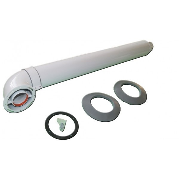 Комплект универсальный, фланцевый (труба коаксиальная и угол) подходит для большинства типов газовых котлов с подключением коаксиального дымохода 60/100 мм. Применяется для принудительного отвода продуктов сгорания и притока воздуха через стену.