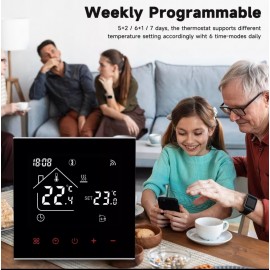 Программируемый терморегулятор с недельным циклом программирования предназначен для управления электронагревательными системами, такими как: электрические "теплые" полы, электрообогреватели, системы нагрева воды. Термостат имеет сенсорный LED дисплей, встроенный датчик температуры воздуха, а так же выносной датчик температуры. Терморегулятор настраивается сенсорными кнопками, расположенными в нижней части экрана. Яркий сенсорный экран хорошо виден даже в темной комнате.
