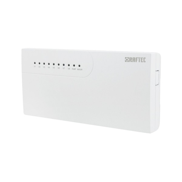 Зональный контроллер Raftec CC-1405 предназначен для управления системой водяного теплого пола с разделением на отдельные зоны отопления. Устройство позволяет подключать комнатные термостаты и сервоприводы, автоматически регулируя подачу теплоносителя в каждом помещении и обеспечивая комфортную температуру.