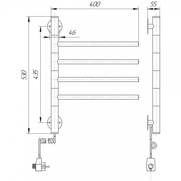 Электрический полотенцесушитель Вертикаль, изготовлен производственным объединением Elna-Service из высококачественной нержавеющей стали марки AISI 304, что делает его устойчивым к коррозии и эрозии, расход электроэнергии не превышает расход лампочки, а степень пыле-электрозащиты IP44 делает его абсолютно безопасным электрическим устройством, которое будет поддерживать оптимальную влажность и температуру Вашей ванной комнаты.