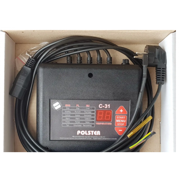 Микропроцессорный регулятор (блок управления) температуры центрального отопления POLSTER С31 - это надежное и простое в использовании устройство, которое обеспечивает стабильную и эффективную работу котла. С помощью этой автоматики вы сможете контролировать температуру в помещении и поддерживать ее на нужном уровне, что позволит существенно сэкономить на затратах на отопление. Автоматика Polster оснащена надежными датчиками, которые позволяют точно определять температуру и поддерживать ее на заданном уровне. Кроме того, она имеет защиту от перегрева и обрыва провода, что гарантирует безопасность ее использования. Установка автоматики Polster на котел - это простой процесс, который может быть выполнен без использования специальных инструментов. Она совместима с большинством типов котлов и не требует дополнительной настройки. Если вы ищете надежное и эффективное устройство для контроля температуры в вашем доме, то автоматика Polster для котла - это идеальный выбор для вас. Регулятор Polster C-31 предназначен для управления работой вентилятора, а также насоса котла. Регулятор имеет богатый набор функций и очень легкое управление. Реализована дополнительная функция предохранения - термик.