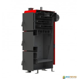 Топка объемная. В верхней ее части находятся форсунки для подачи вторичного воздуха. Они дают возможность дожигать до конца топливо любого качества и достигать наибольшей продолжительности работы на единоразовой загрузке.