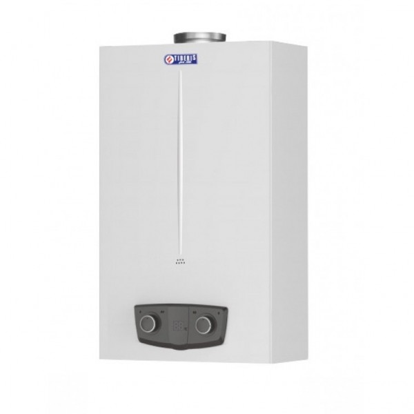 Tiberis MICRA - газовый проточный водонагреватель с открытой камерой сгорания и тепловой мощностью 20 кВт, который может обеспечить производительность горячей воды 10 л/мин, что достаточно для 2-х точек водоразбора (например, кухня и ванна). Является идеальным решением для водоснабжения частных домов, офисных помещений и квартир, где установлено отопление и существует дымоходный канал. Водонагреватель имеет высокое качество сборки, эргономичный дизайн, отличные массо-габаритные характеристики и дисплей для отображения информации. Наличие дисплея облегчает потребителю осуществлять контроль за работой водонагревателя. На дисплее также отражается информация о нарушениях в работе колонки, которые могут быть расшифрованы с помощью инструкции. Это значительно упрощает процесс определения причины неисправности колонки. Основной особенностью колонки является наличие модуляционной горелки, при помощи которой температура воды на выходе остается неизменной, несмотря на измениние давления воды на входе. Еще одной особенностью колонки Micra является теплообменник, который изготовлен из бескислородной меди, благодаря этому увеличена надежность агрегата и срок использования. Высокочувствительный датчик протока сантехнической воды разрешает использовать водонагреватель на объектах, где давление воды нестабильное и может опускаться до критической границы. При помощи электронных приборов , которые постоянно контролируют процессы сгорания топлива и удаления дыма, давление воды, гарантирует очень высокий уровень безопасности.