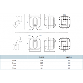 Достоинствами бойлера Hi-therm FLAT 15 A есть минималистичный дизайн оборудования и небольшие габариты делают модель удобной в установке. Решение подходит для небольших ванных комнат и технических помещений, может помещаться в верхний шкаф или нижний на кухне.