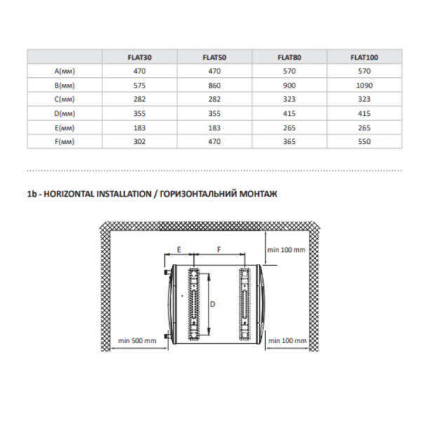 Водонагреватель Hi-therm FLAT 80 (вертикальная и горизонтальная установка)