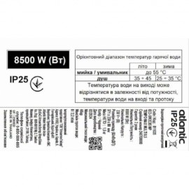 - Конструкция водонагревателя Атлантик Макс Мульти 8.5 кВт предусматривает защиту по стандарту IP25. Первая цифра «2» указывает на степень защиты от мелких твердых частиц диаметром до 12 мм. Вторая цифра обозначает степень защиты от влаги, где «5» указывает на защиту от струй воды.